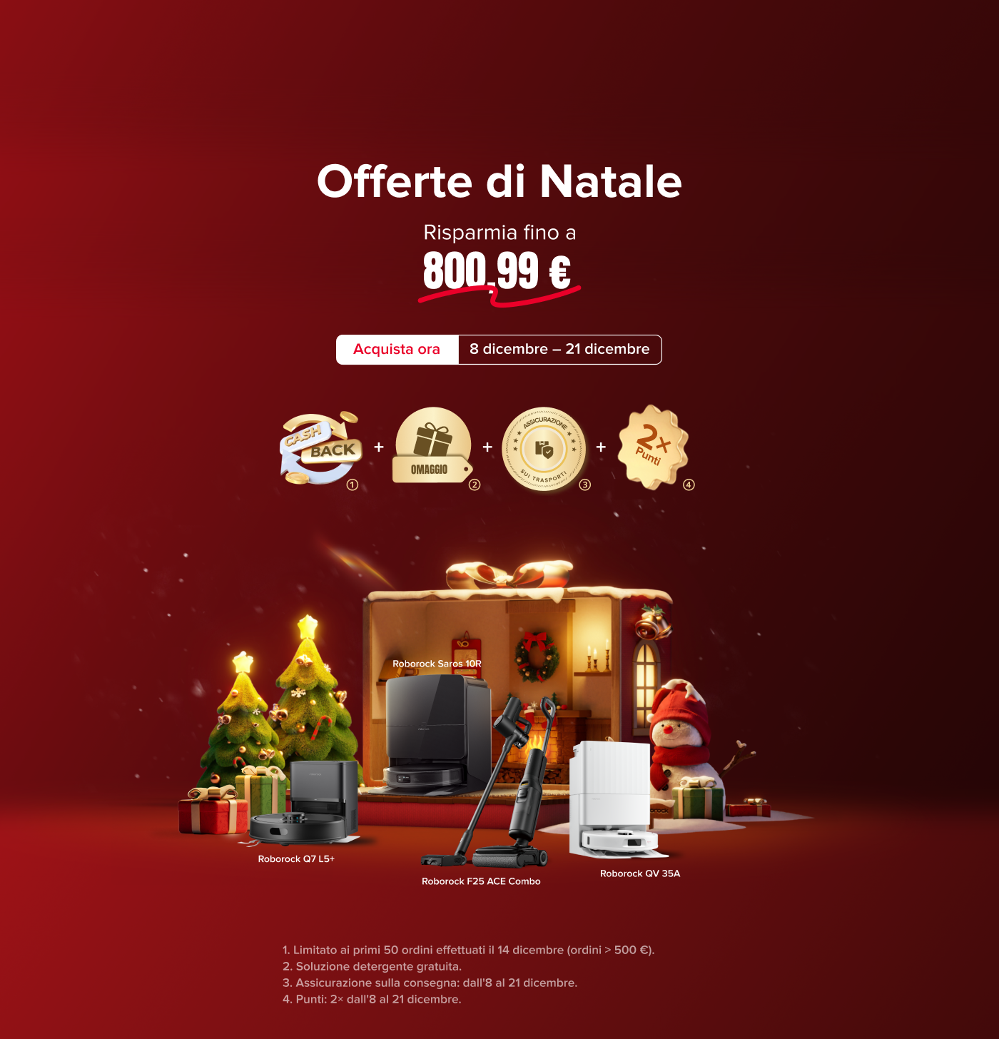 Inserisci il tuo indirizzo e-mail per ricevere un codice sconto dell'8% per la maggior parte dei modelli di aspirapolvere. Dal 8 al 21 dicembre, questo sconto è valido solo per Saros 10R RDS, Q5 Pro, F25 Combo, F25 ALT, Qrevo CurvX e i prodotti ricondizionati.