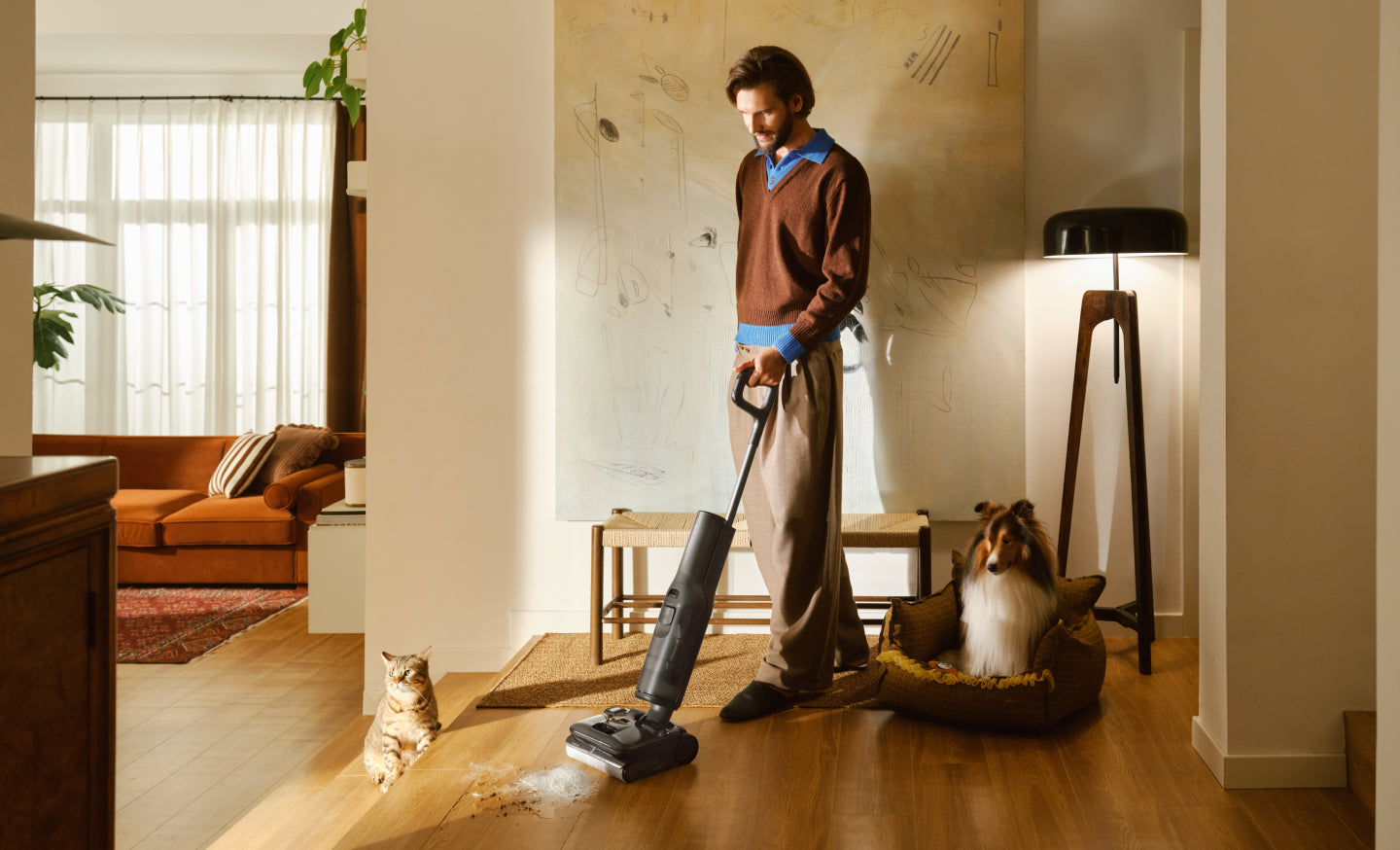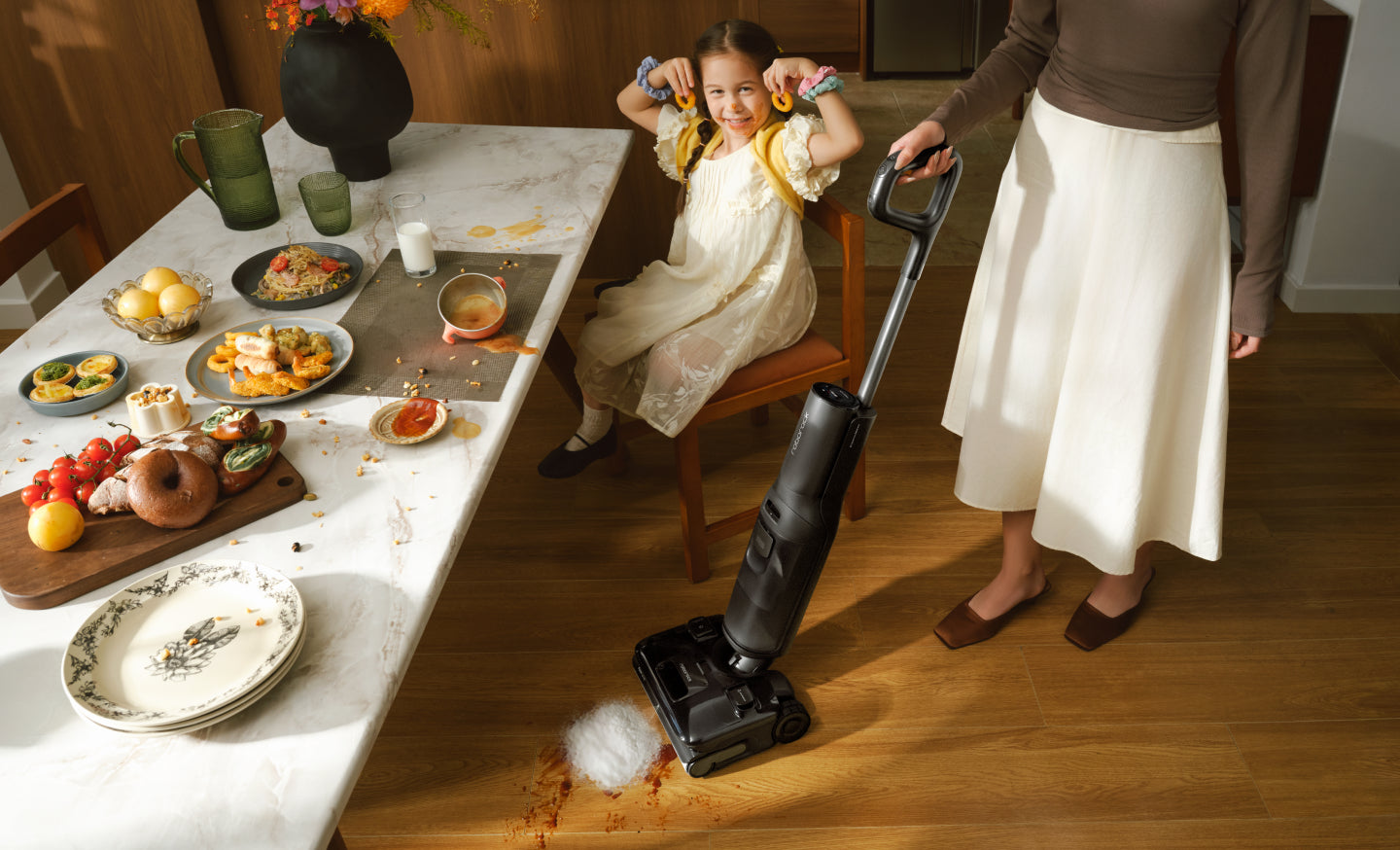 Con una potenza di aspirazione di 25.000 Pa, una pressione verso il basso di 30 N e una rotazione della spazzola di 430 giri/min, solleva la polvere incrostata e affronta lo sporco umido e secco per una pulizia più profonda.