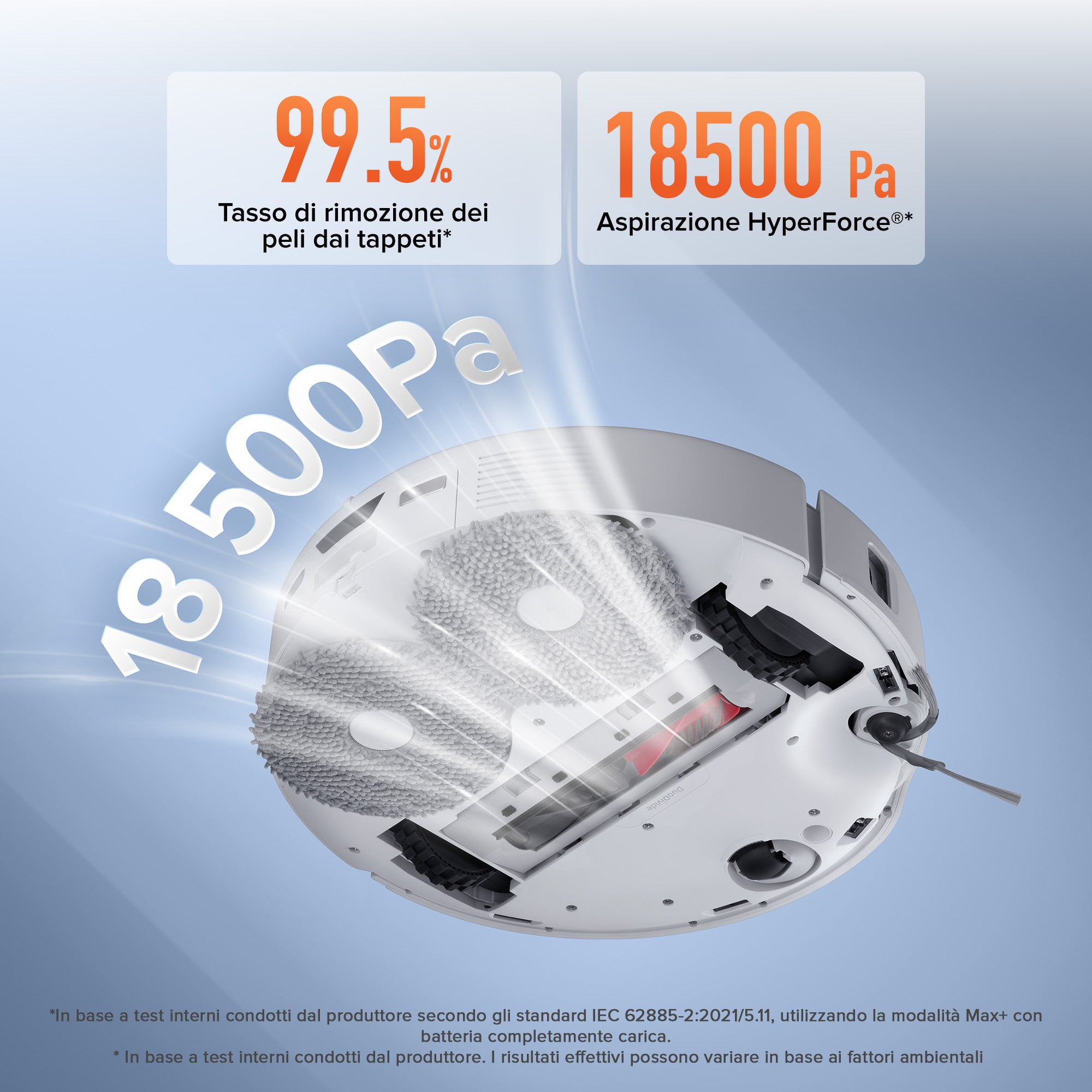 1. Potenza di aspirazione HyperForce fino a 18.500 Pa per ottime prestazioni di pulizia.